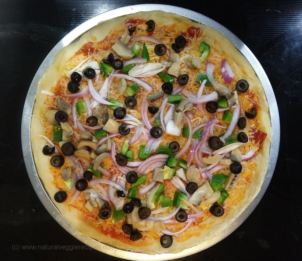 Your No Yeast Pizza is now ready. Cut a huge slice and indulge in the goodness! Yumm! 😋