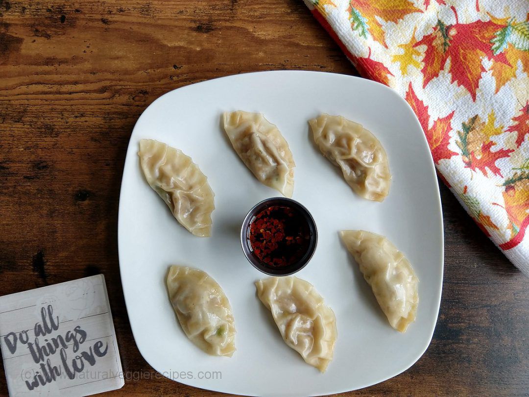 Who thought potstickers can be made vegan? These Veggie Potstickers are an exciting twist to the traditional potstickers that were only availablefor the meat lovers to enjoy. I have used a bunch of different veggies that I could get hold of at home. You could get creative and add any combination of veggies you may please. To top it off, entice your senses with this delicious Soy-Ginger Sauce I am using as a dip alongside these lovely potstickers.